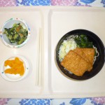 ◇御飯 ◇味噌カツ ◇春菊のお浸し ◇清汁 エネルギー644kcal たんぱく質18.4g 脂質16.7...