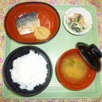 ◇御飯 ◇鯖の塩焼き ◇小松菜のドレッシング和え ◇味噌汁 エネルギー649kcal たんぱく質20.3g 脂質24.4g 炭水化物7...