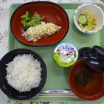 ◇御飯 ◇白身魚のタルタル焼き ◇イタリアンサラダ ◇コンソメスープ ◇ヨーグルト エネルギー748kcal たんぱく質23.4g 脂...