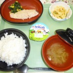 ◇御飯 ◇鮭のめんたいソース ◇マカロニサラダ ◇セロリスープ ◇ヨーグルト エネルギー750kcal たんぱく質25.6g 脂質25...