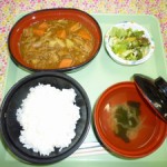 ◇御飯 ◇ビーフカレー ◇グリーンサラダ ◇コンソメスープ エネルギー661kcal たんぱく質20.5g 脂質18.0g 炭水化物1...