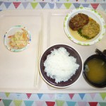 ◇ご飯 ◇和風おろしハンバーグ ◇胡麻ドレッシング和え ◇味噌汁 エネルギー596kcal ...
