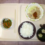 ◇御飯 ◇和風おろしハンバーグ ◇和風胡麻和え ◇味噌汁 エネルギー592kcal たんぱく質18.8g ...