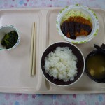 ◇ご飯 ◇味噌カツ ◇春菊のお浸し ◇味噌汁 エネルギー658kcal たんぱく質19.2...