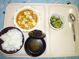 2019年7月21日(日) 2019/7/21 メニュー, 豆腐, 豚肉 ◇ご飯 ◇豆腐のチリソース炒め ◇コブサラダ ◇中華スープ エネルギー671kcal たんぱく質25.3g 脂質22.6g 炭水化物87.6g 食塩3.1g