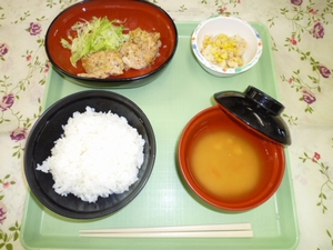 2013年4月27日(土) 2013/4/27 メニュー ◇御飯 ◇鶏肉の香草焼き ◇香味サラダ ◇味噌汁 エネルギー609kcal たんぱく質25.6g 脂質17.7g 炭水化物82.7g 塩分3.3g