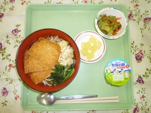 2013年5月16日(木) 2013/5/16 メニュー ◇きつねそば ◇和風ブロッコリーサラダ ◇フルーツ ◇ヨーグルト エネルギー579kcal たんぱく質23.3g 脂質11.1g 炭水化物99.8g 塩分3.1g