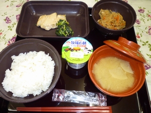 2010年11月22日(月) 2010/11/22 メニュー ◇御飯 ◇ホキの鱈子ソース焼き ◇切干煮付け ◇豚汁 ◇ヨーグルト エネルギー680kcal たんぱく質27.2g 脂質17.8g 炭水化物99.8g 塩分3.6g *参考