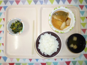2020年5月16日(土) 2020/5/16 メニュー, 鯖 ◇御飯 ◇鯖の味噌煮 ◇和風ドレッシング和え ◇清汁 エネルギー675kcal たんぱく質20.7g 脂質25.5g 炭水化物87.2g 食塩2.6g