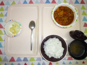 2020年5月17日(日) 2020/5/17 メニュー, 牛肉 ◇御飯 ◇ビーフシチュー ◇洋風サラダ ◇コンソメスープ エネルギー767kcal たんぱく質22.4g 脂質29.0g 炭水化物99.5g 食塩4.0g