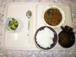 2020年7月10日(金) 2020/7/10 メニュー, 豚肉 ◇御飯 ◇麻婆茄子 ◇コブサラダ ◇中華スープ エネルギー639kcal たんぱく質20.3g 脂質22.1g 炭水化物86.8g 食塩3.3g