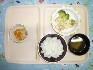 2020年9月12日(土) 2020/9/12 メニュー, 鮭 ◇御飯 ◇サーモンのタルタル焼き ◇イタリアンサラダ ◇コンソメスープ エネルギー624kcal たんぱく質22.5g 脂質21.4g 炭水化物82.9g 食塩2.2g