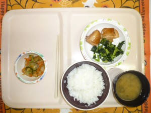 2020年10月20日(火) 2020/10/20 メニュー, 鶏肉 ◇御飯 ◇鶏の照り焼き ◇おろし醤油和え ◇味噌汁 エネルギー597kcal たんぱく質24.5g 脂質15.6g 炭水化物85.3g 食塩3.1g