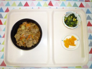 2021年5月13日(木) 2021/5/13 メニュー ◇いかソース焼きそば ◇チンゲン菜の中華サラダ ◇みかん缶 エネルギー659kcal たんぱく質26.6g 脂質14.3g 炭水化物102.2g 食塩3.7g