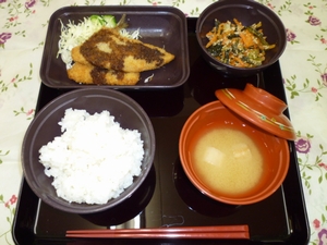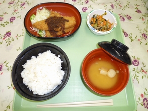2010年12月17日(金) 2010/12/17 メニュー ◇御飯 ◇鯵と白身魚のフライ ◇人参のそぼろ炒め ◇味噌汁 エネルギー677kcal たんぱく質26.7g 脂質16.7g 炭水化物100.9g 塩分2.8g *参考*