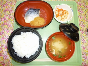 ◇御飯 ◇鯖の塩焼き ◇香味サラダ ◇味噌汁 エネルギー601kcal たんぱく質20.4g 脂質20.0g 炭水化物80.6g 塩分3.1g