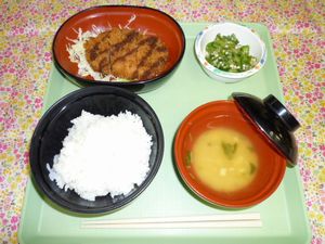 2016年1月23日(土) 2016/1/23 メニュー ◇御飯 ◇とんかつ ◇オクラのお浸し ◇味噌汁 エネルギー610kcal たんぱく質17.2g 脂質16.1g 炭水化物95.9g 食塩3.0g