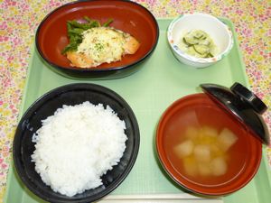 2016年3月16日(水) 2016/3/16 メニュー ◇御飯 ◇鮭のタルタル焼き ◇フレンチサラダ ◇コンソメスープ エネルギー584kcal たんぱく質22.2g 脂質16.8g 炭水化物83.2g 食塩2.2g