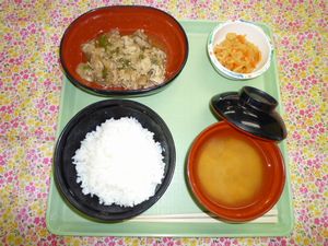 2016年4月29日(金) 2016/4/29 メニュー ◇御飯 ◇豚肉の生姜炒め ◇大根サラダ ◇味噌汁 エネルギー662kcal たんぱく質25.3g 脂質20.1g 炭水化物90.0g 食塩2.8g