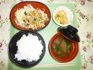 2011年3月20日(日) 2011/3/20 メニュー ◇御飯 ◇鶏肉の中華風味噌炒め ◇中華サラダ ◇中華スープ エネルギー613kcal たんぱく質24.2g 脂質15.4g 炭水化物91.8g 塩分2.5g