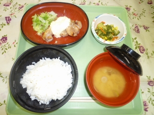 2012年3月30日(金) 2012/3/30 メニュー ◇御飯 ◇チキン南蛮風 ◇ブロッコリーサラダ ◇味噌汁 エネルギー825kcal たんぱく質28.0g 脂質38.3g 炭水化物88.3g 塩分3.8g
