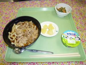 2016年8月18日(木) 2016/8/18 メニュー ◇肉うどん ◇胡麻風味サラダ ◇パイン缶 ◇ヨーグルト エネルギー687kcal たんぱく質30.0g 脂質25.1g 炭水化物81.6g 食塩3.7g
