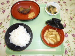 2012年10月2日(火) 2012/10/2 メニュー ◇御飯 ◇鯵の唐揚げ ◇小松菜のごま醤油和え ◇味噌汁 エネルギー595kcal たんぱく質24.3g 脂質14.9g 炭水化物83.7g 塩分3.4g