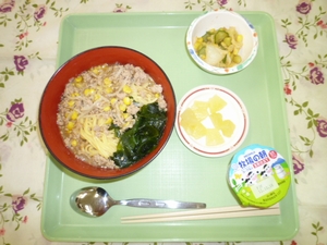 2012年10月4日(木) 2012/10/4 メニュー ◇味噌ラーメン ◇中華サラダ ◇パイン缶 ◇ヨーグルト エネルギー669kcal たんぱく質31.0g 脂質16.8g 炭水化物95.9g 塩分3.8g
