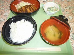 2018年7月25日(水) 2018/7/25 メニュー, 鮭 ◇御飯 ◇サーモンフライ ◇菜の花の白和え ◇味噌汁 エネルギー611kcal たんぱく質26.4g 脂質17.3g 炭水化物85.0g 食塩2.6g