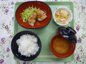 2013年1月12日(土) 2013/1/12 メニュー ◇御飯 ◇鶏肉の香草焼き ◇香味サラダ ◇味噌汁 エネルギー616kcal たんぱく質25.9g 脂質17.9g 炭水化物83.7g 塩分3.3g