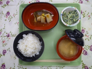2013年1月18日(金) 2013/1/18 メニュー ◇御飯 ◇鰈の煮付け ◇菜の花の白和え ◇味噌汁 エネルギー590kcal たんぱく質29.9g 脂質12.9g 炭水化物85.6g 塩分2.8g