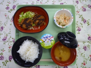2013年1月21日(月) 2013/1/21 メニュー ◇御飯 ◇チキンカツ ◇大根サラダ ◇味噌汁 ◇ヨーグルト エネルギー730kcal たんぱく質22.4g 脂質23.4g 炭水化物104.5g 塩分2.9g