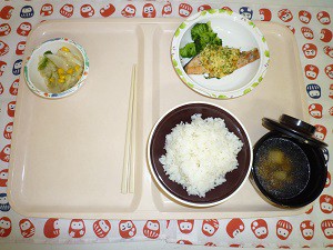 2018年1月26日(土) 2019/1/26 メニュー, 鮭 ◇御飯 ◇鮭のタルタル焼き ◇イタリアンサラダ ◇コンソメスープ エネルギー613kcal たんぱく質23.1g 脂質20.1g 炭水化物82.9g 食塩2.2g