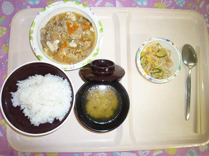 2019年4月21日(日) 2019/4/21 メニュー, 豆腐 ◇ご飯 ◇豆腐のチャンプルー ◇コブサラダ ◇中華スープ エネルギー685kcal たんぱく質25.7g 脂質24.5g 炭水化物86.6g 食塩2.9g