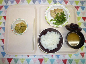 2019年5月29日(水) 2019/5/29 メニュー, 鶏肉 ◇ご飯 ◇鶏肉の味噌マヨ焼き ◇白菜の生姜風味和え ◇味噌汁 エネルギー658kcal たんぱく質23.2g 脂質24.6g 炭水化物82.4g 食塩3.4g