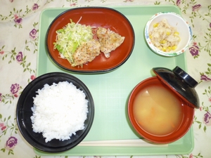 2013年3月23日(土) 2013/3/23 メニュー ◇御飯 ◇鶏肉の香草焼き ◇香味サラダ ◇味噌汁 エネルギー609kcal たんぱく質25.6g 脂質17.7g 炭水化物82.7g 塩分3.3g