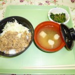◇豚丼 ◇ほうれん草のおかか和え ◇清汁 エネルギー635kcal たんぱく質30.2g 脂質...