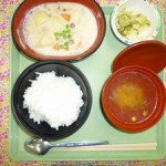 ◇御飯 ◇クリームシチュー ◇マリネサラダ ◇コンソメスープ エネルギー658kcal た...