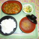 ◇御飯 ◇チキンカレー ◇グリーンサラダ ◇コンソメスープ エネルギー632kcal たんぱく質18.9g 脂質16.3g 炭水化物9...