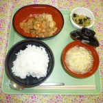 ◇御飯 ◇家常豆腐 ◇大根の中華サラダ ◇卵スープ エネルギー717kcal たんぱく質25.8g 脂質27.2g 炭水化物87.0g...