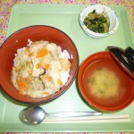 ◇御飯 ◇チキンステーキ ◇粒マスタードサラダ ◇コンソメスープ エネルギー707kcal たんぱく質27.1g 脂質27.3g 炭水...