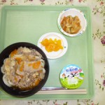 ◇けんちんうどん ◇和風サラダ ◇フルーツ ◇ヨーグルト エネルギー581kcal たんぱく質25.1g 脂質15.2g 炭水化物82...