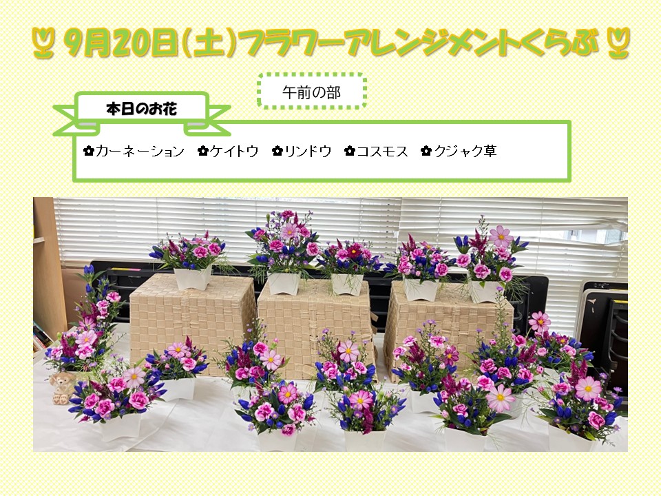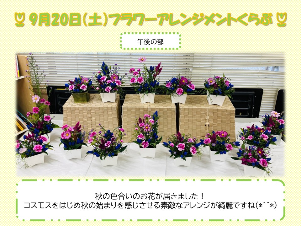 さて、9月20日(土)に行ったフラワーアレンジメントくらぶのご報告です。