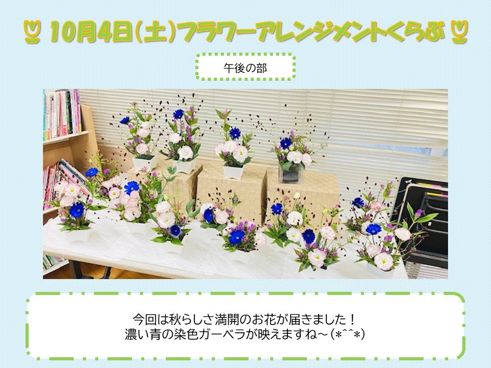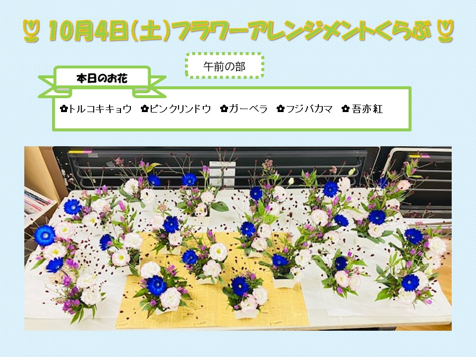 さて、10月4日(土)に行ったフラワーアレンジメントくらぶのご報告です。