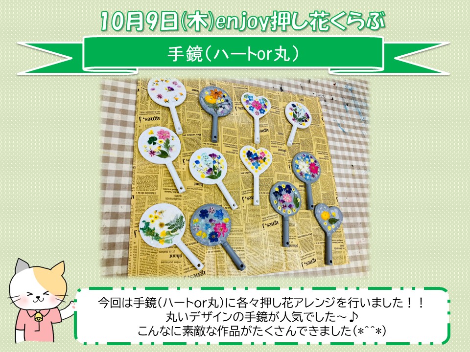 さて、10月9日(木)に行ったenjoy押し花くらぶのご報告です。