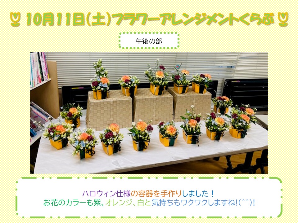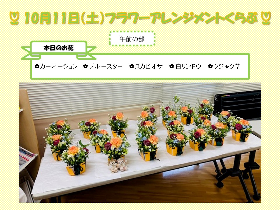 さて、本日は10月11日(土)に行いましたフラワーアレンジメントくらぶのご報告です。