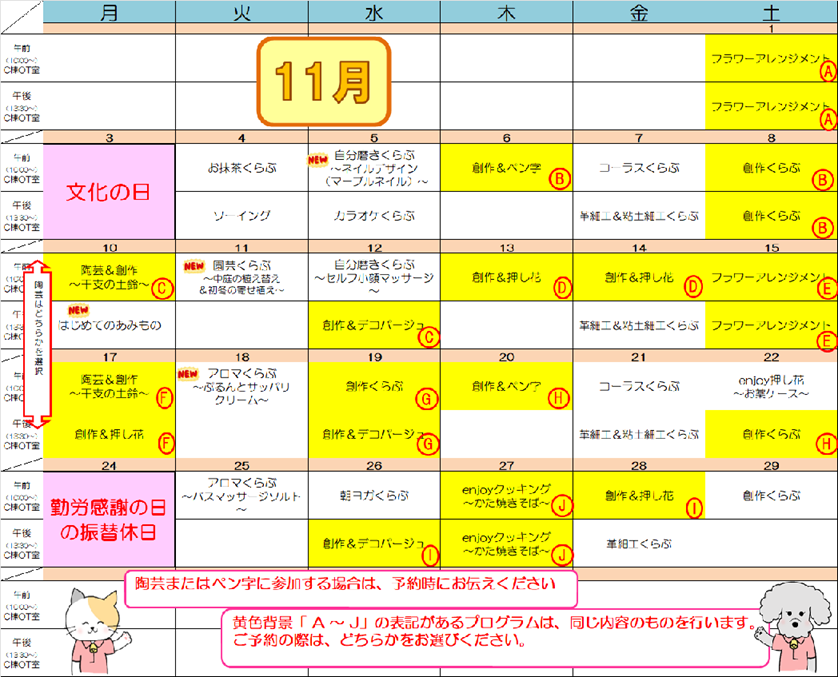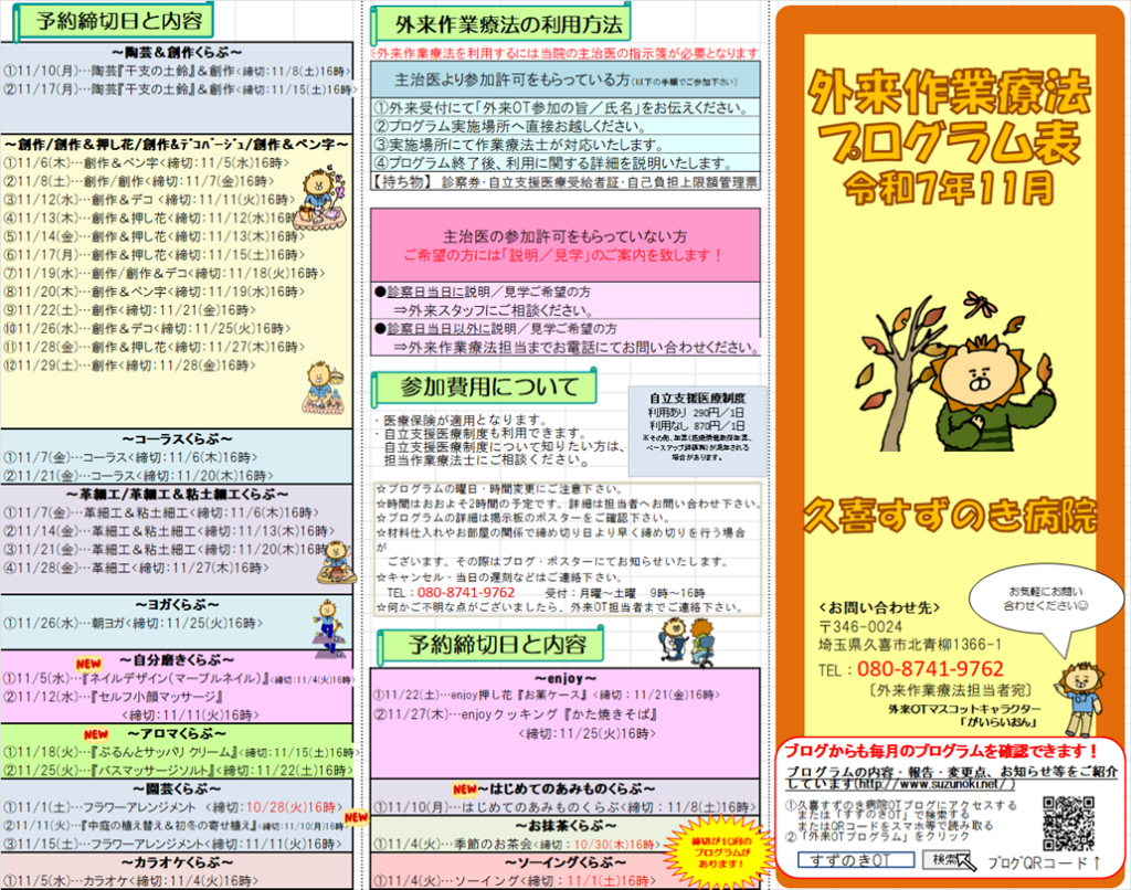 2025年11月のプログラム表を掲載致します。