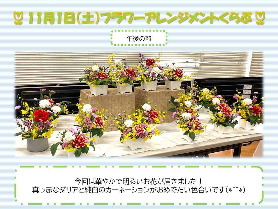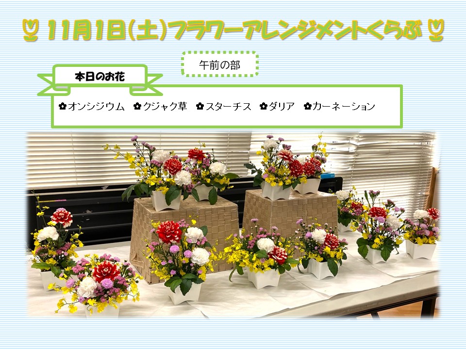 さて、11月1日(土)に行ったフラワーアレンジメントくらぶのご報告です。
