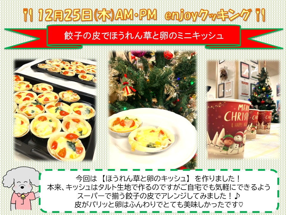 さて、12月25日(木)に行ったenjoyクッキングくらぶのご報告です。