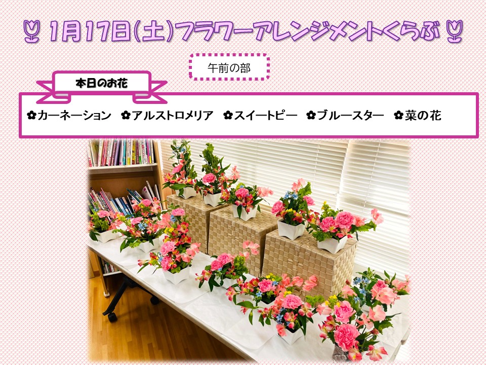 さて、1月17日(土)に行ったフラワーアレンジメントくらぶのご報告です。